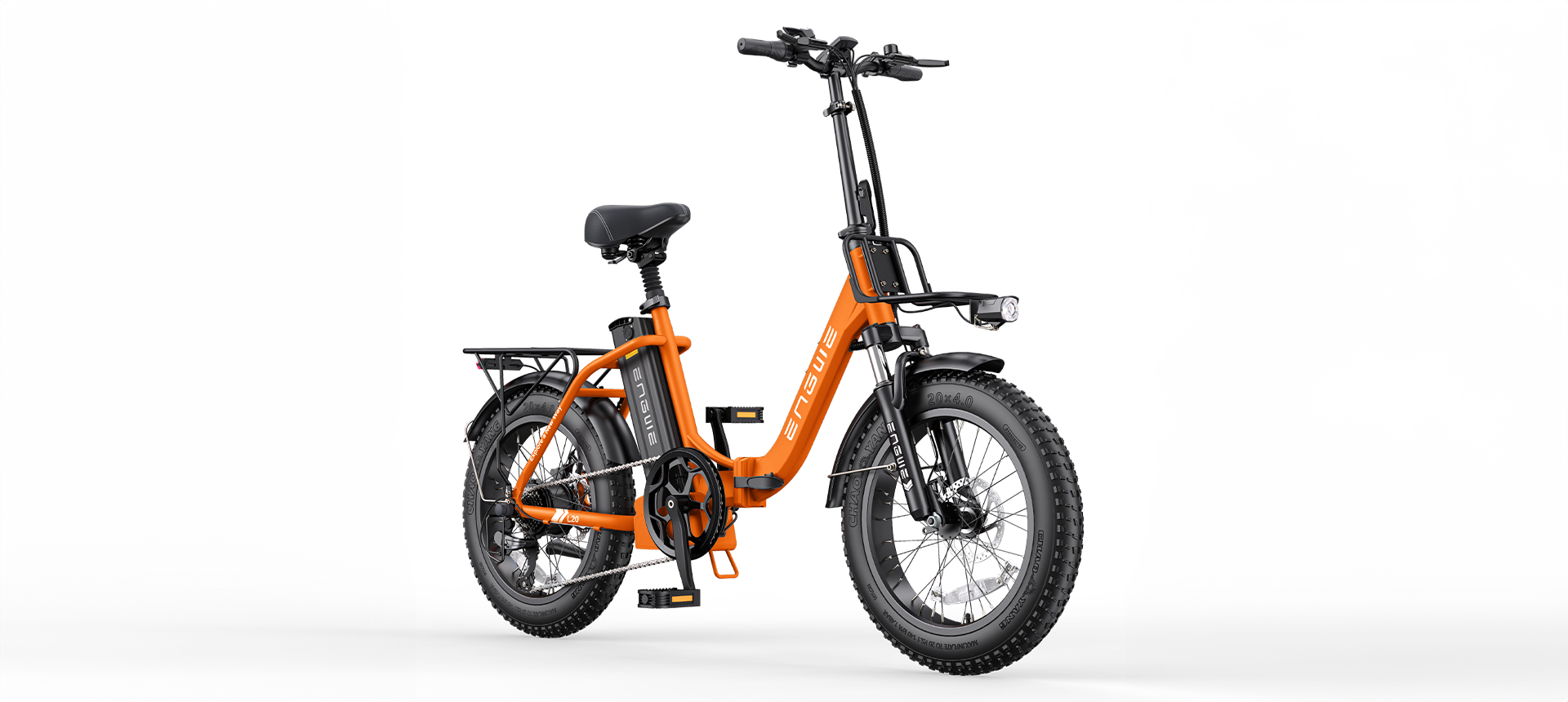 Engwe L20 – delivery-ready electric bike suitable for food delivery and courier work.